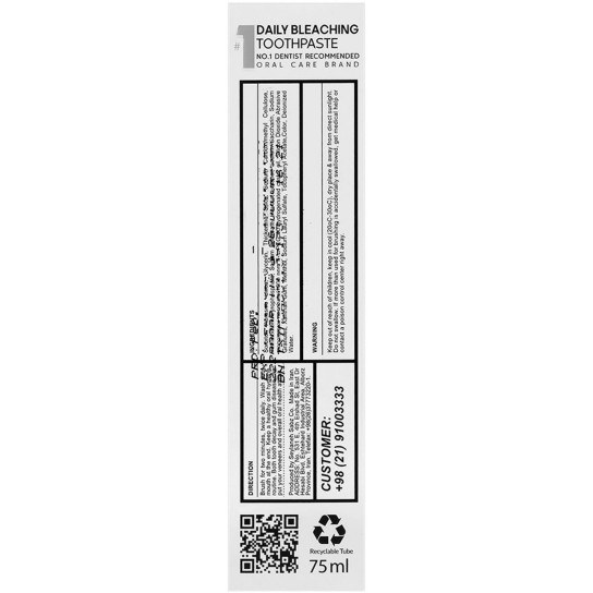 سفید کنندگی قوی و ایمن محافظت از مینای دندان ضد پوسیدگی و ضد باکتری مناسب برای استفاده ی روزانه با طعم خوشایند تاریخ انقضا ۳ سال پس از تولید